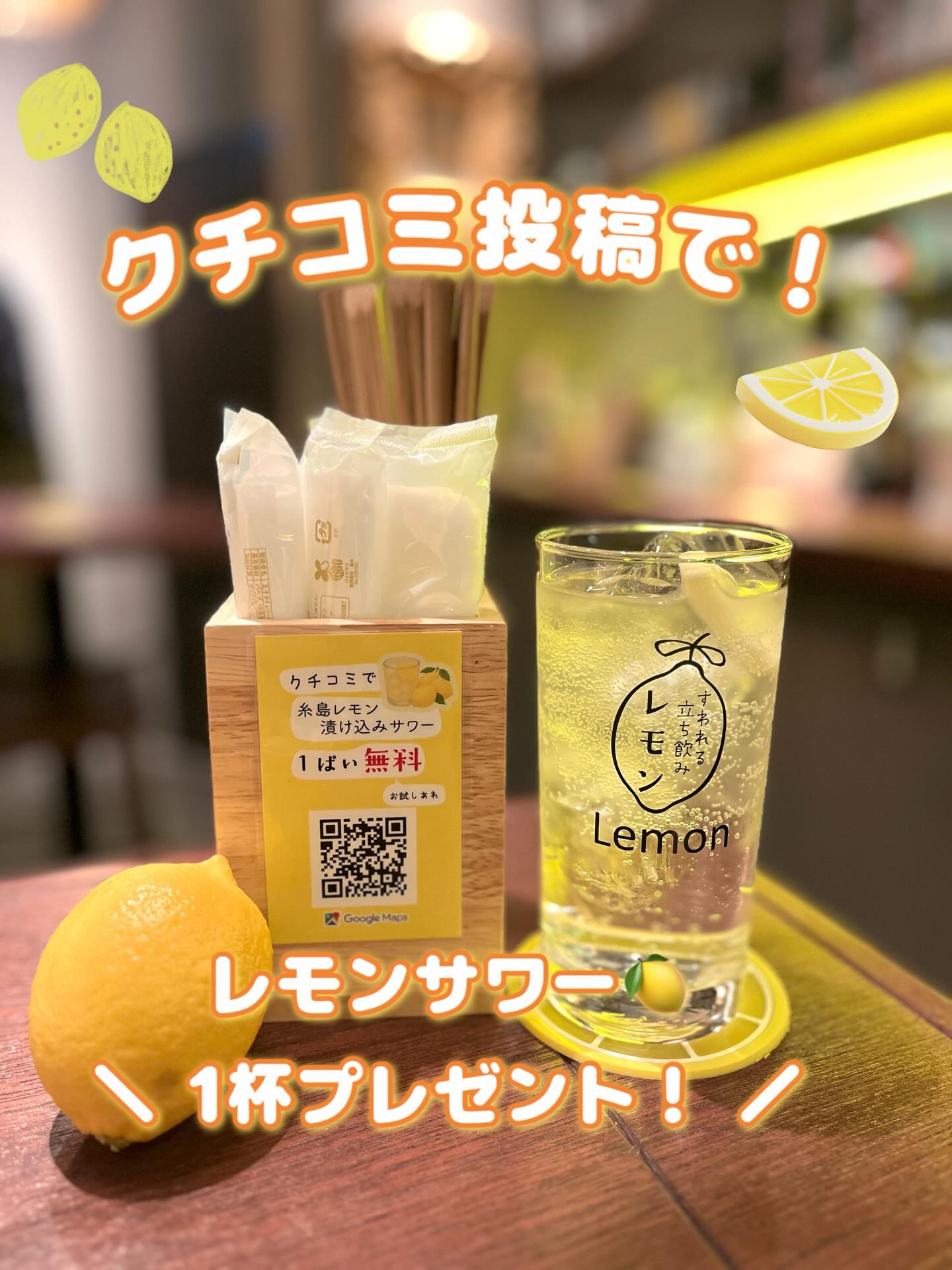 自家製レモンサワーを気軽に楽しめる立ち飲みスタイルのお店です。